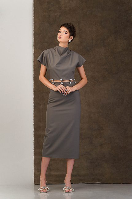 Rochie gri din stofa subtire