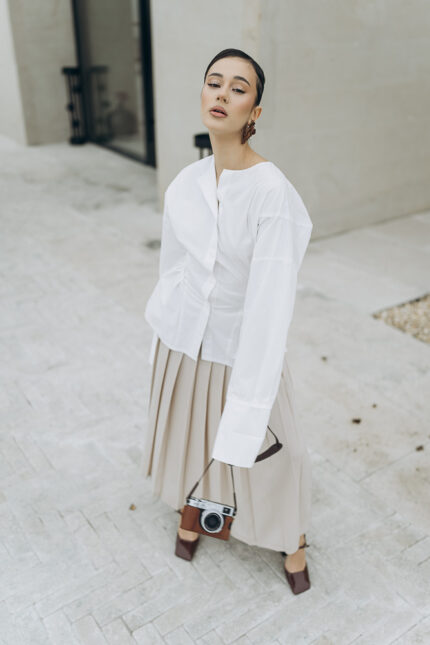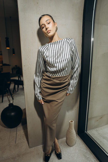 Rozanne fusta plisata bej