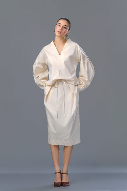 Evea camasa organza matase ivoire