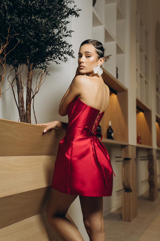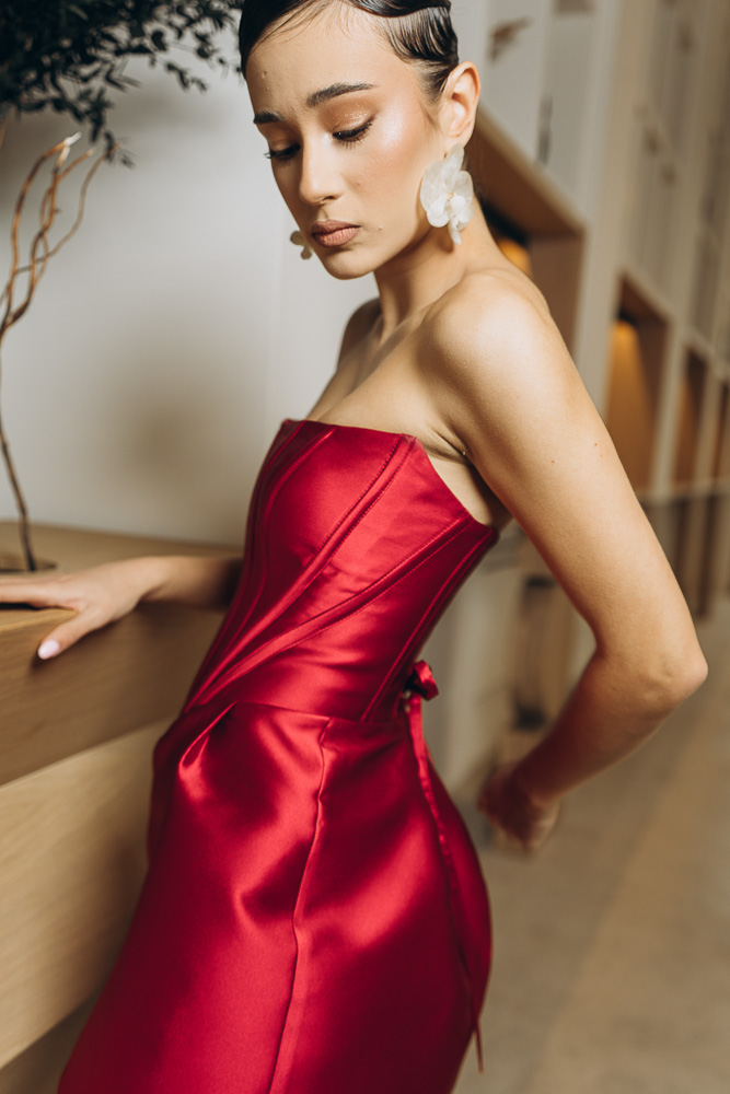 Rochie din tafta de matase, material usor, extrem de placut la atingere, design cu corset care sculpteaza talia. Corsetul este reglabil la spate cu ate si are cupe incluse. Fusta este in forma de A iar volumul poate fi ajustat. Rochia este o piesa versatila, atemporala ce poate fi usor integrata in tinutele from day to night. Se potriveste la multe tipuri de conformatii datorita formei lejere, talia poate fi accentuata cu usurinta cu un cordon/curea. Poate fi purtata si la evenimente mai elegante, cu accesorizarea potrivita.